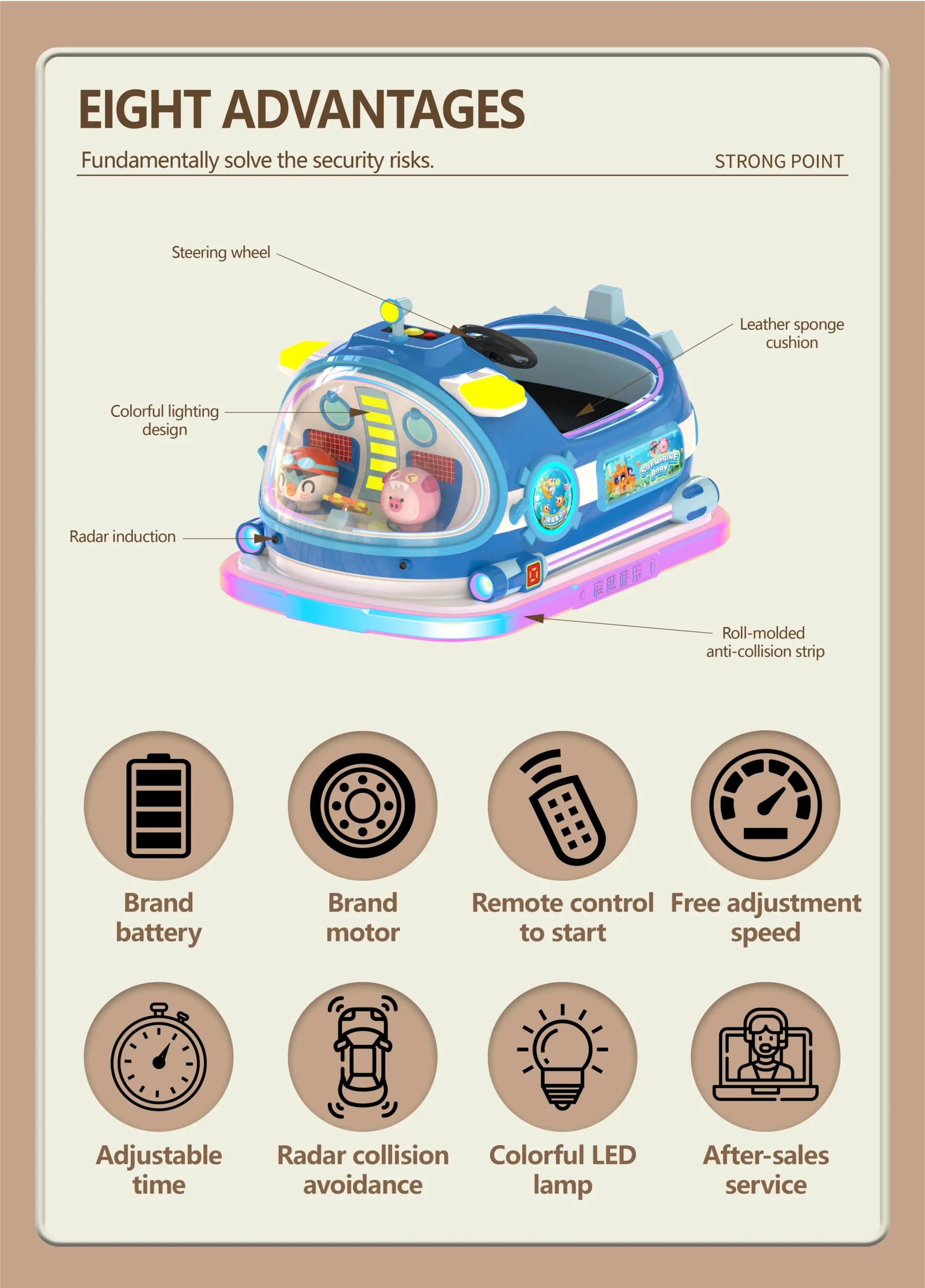 Absolutely. Our bumper cars are designed with a fiberglass structure and are UV-resistant, waterproof, anti-collision, and anti-fall, making them safe and durable for indoor amusement parks, outdoor plazas, and rental events. 🌦️