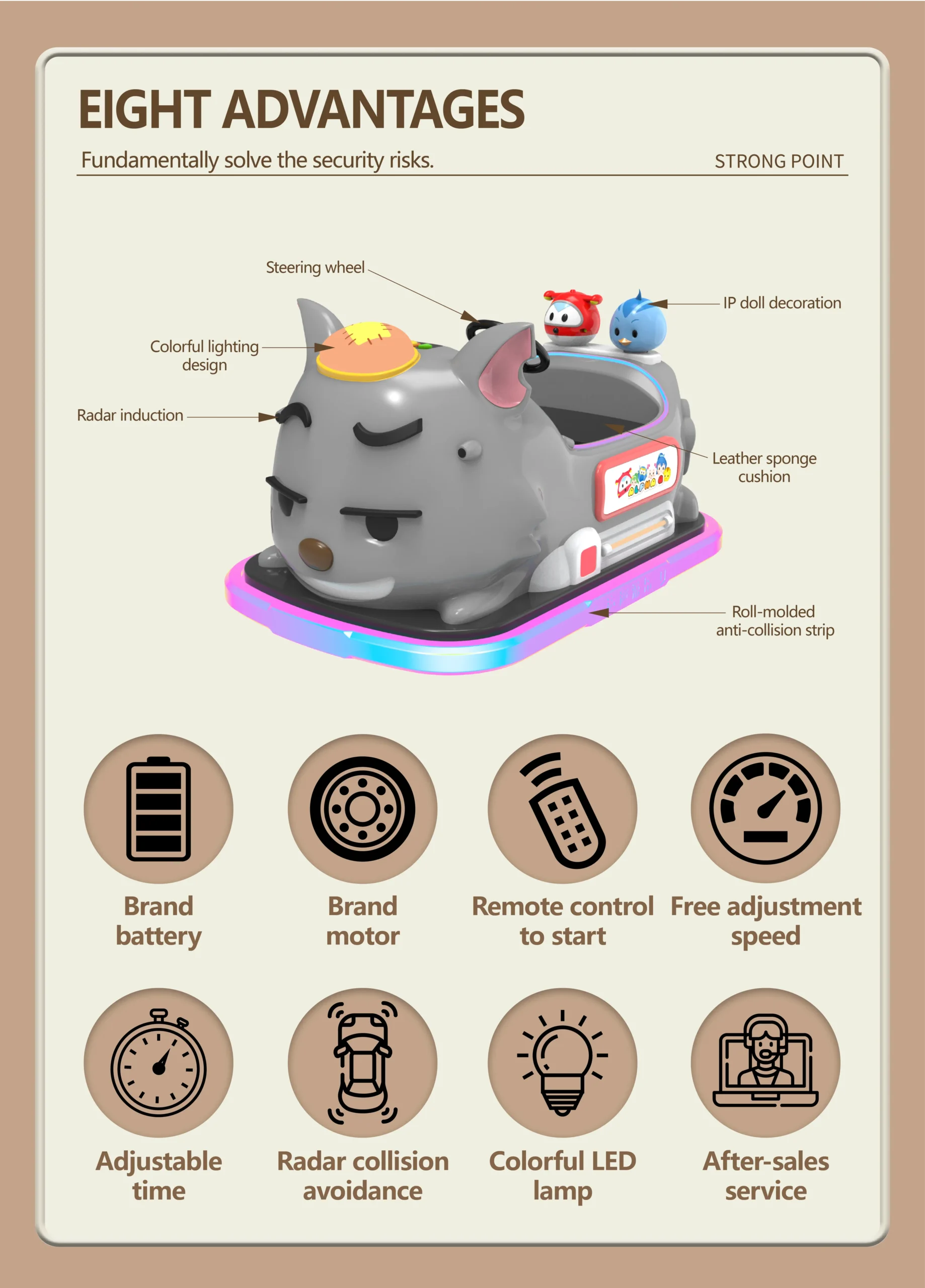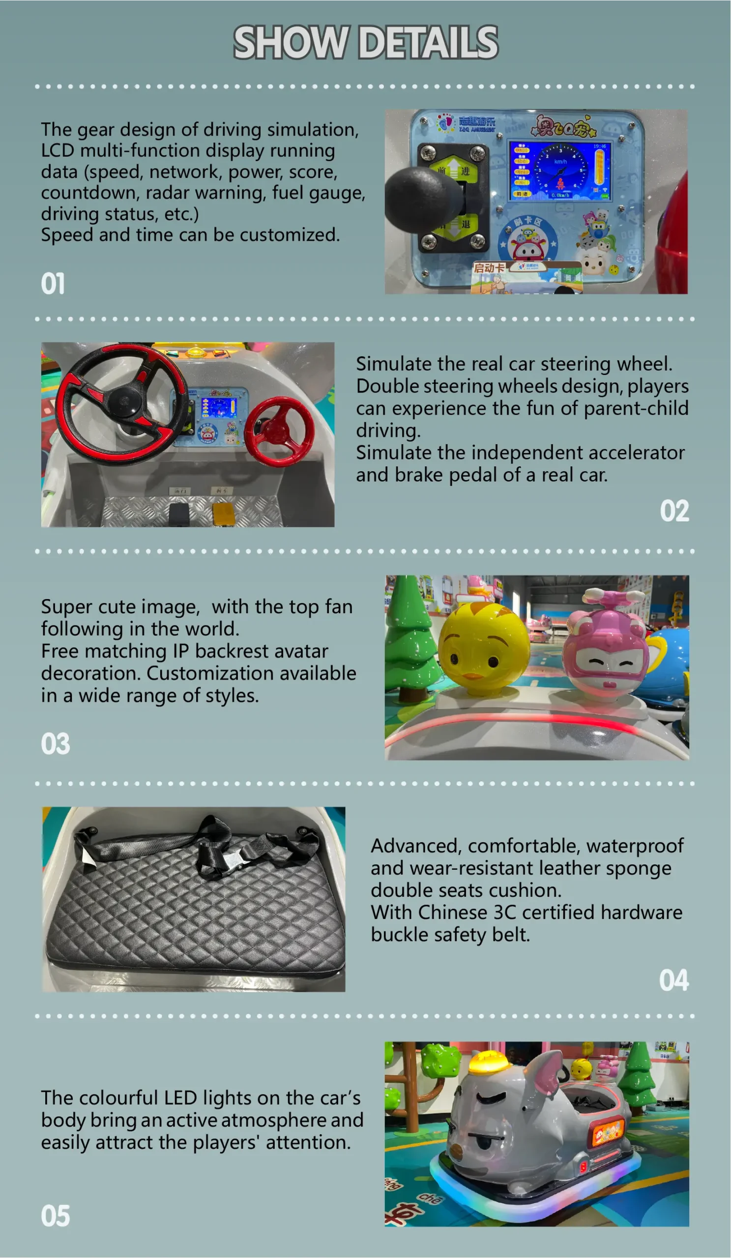 Our kiddie ride electric cars combine fiberglass durability, LED light attraction, and high-safety design. Perfect for amusement parks, shopping malls, kindergartens, and outdoor plazas. As an OEM factory supplier, we provide full customization, bulk manufacturing, and cost-efficient B2B solutions.