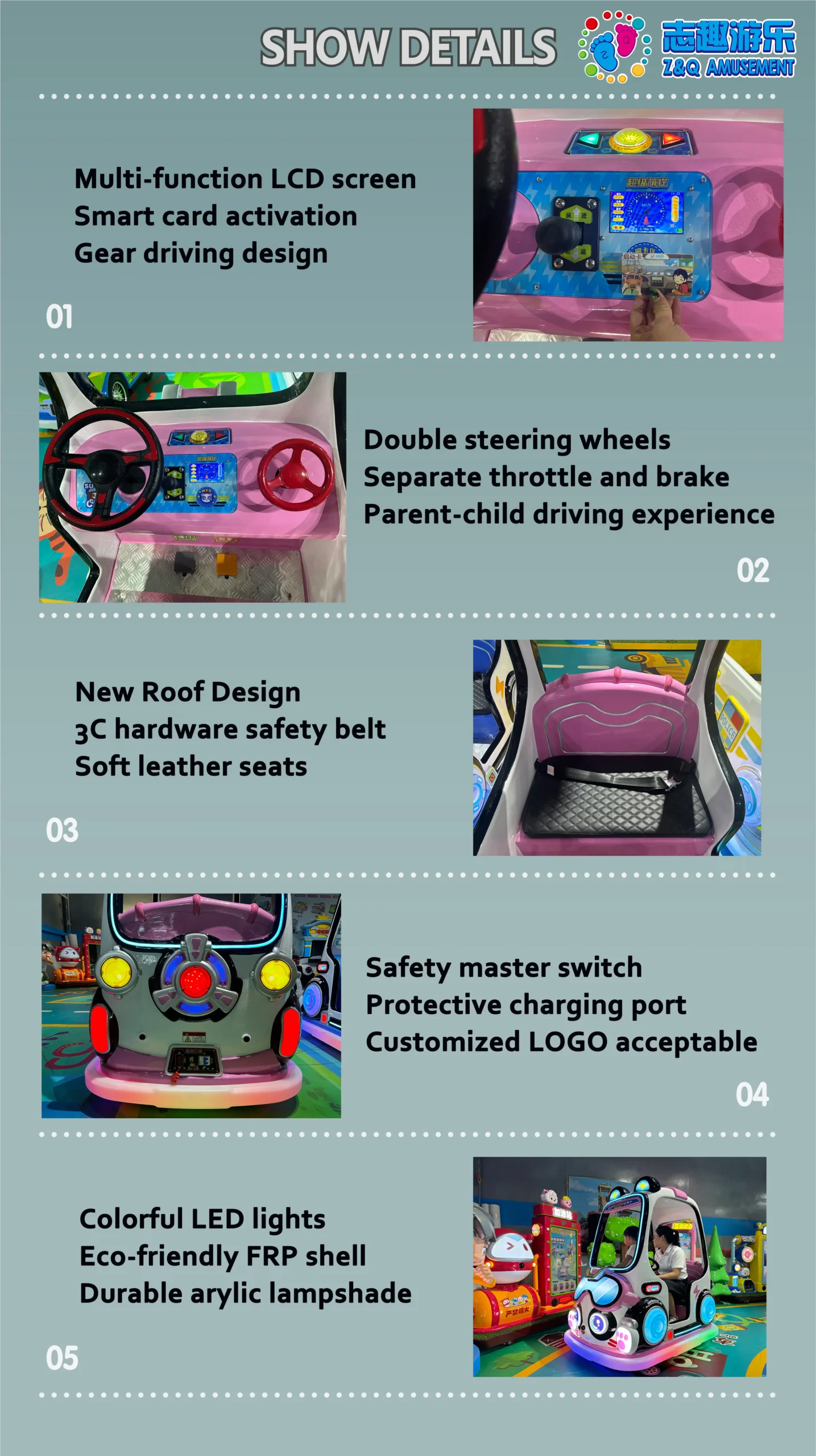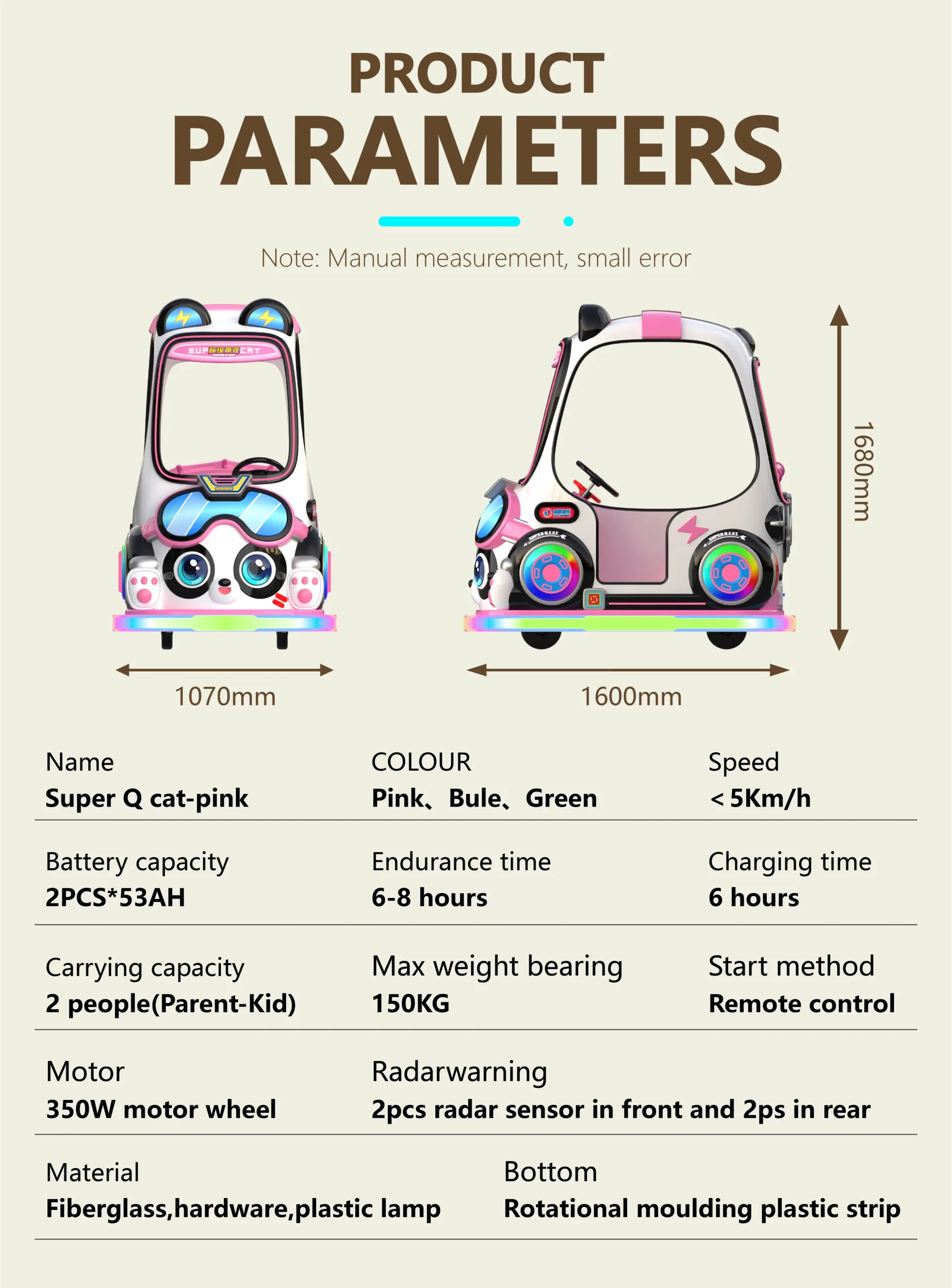 Our plaza cat ride-on EV is an innovative amusement ride built with a fiberglass anti-collision frame, waterproof coating, and eco-friendly materials. With LED light decoration, interactive sensor technology, and child-safe design, it attracts families in plazas, shopping centers, outdoor playgrounds, and amusement parks. The vehicle ensures high durability, low maintenance, and customizable OEM solutions for operators looking for reliable wholesale products.