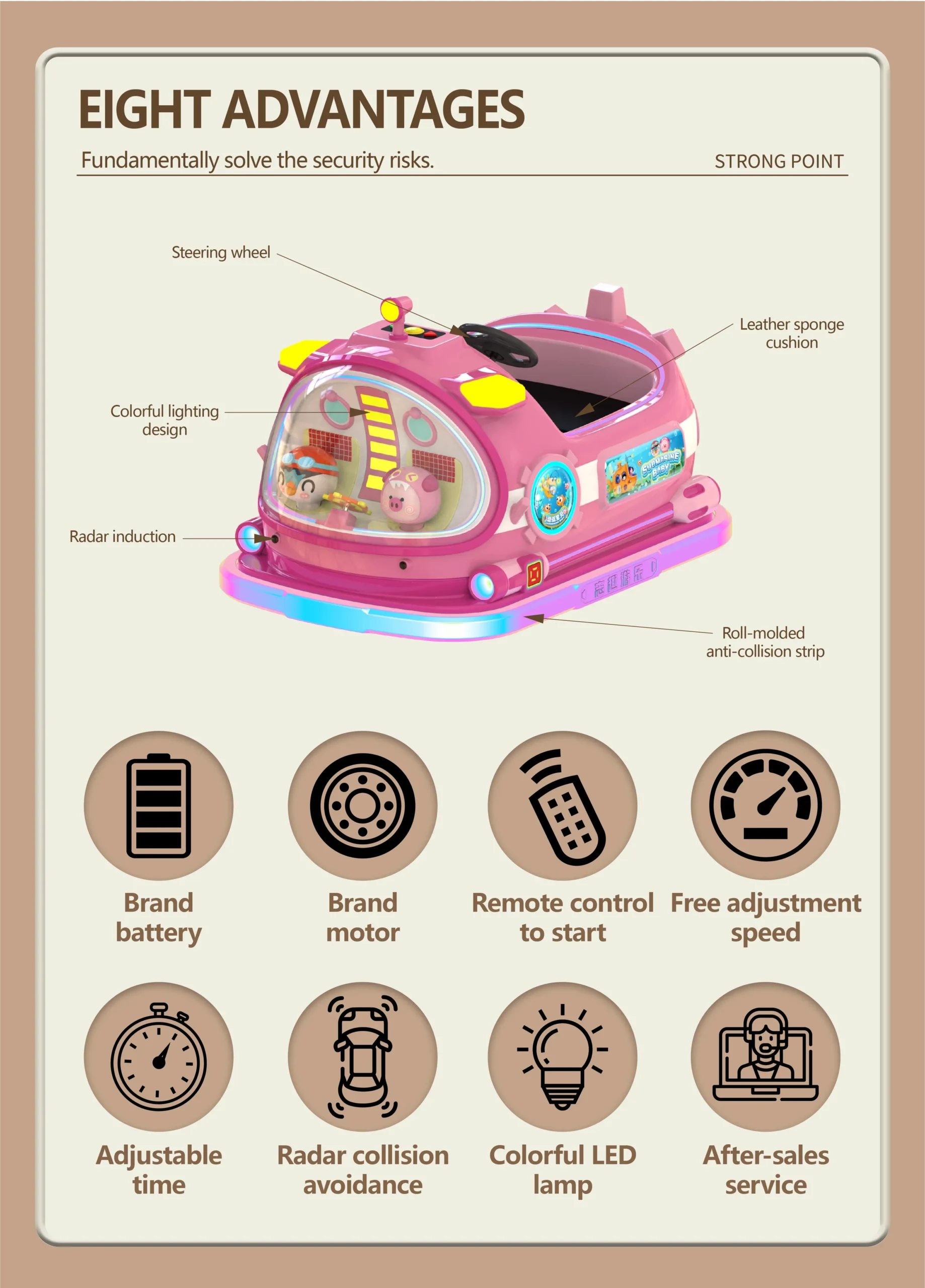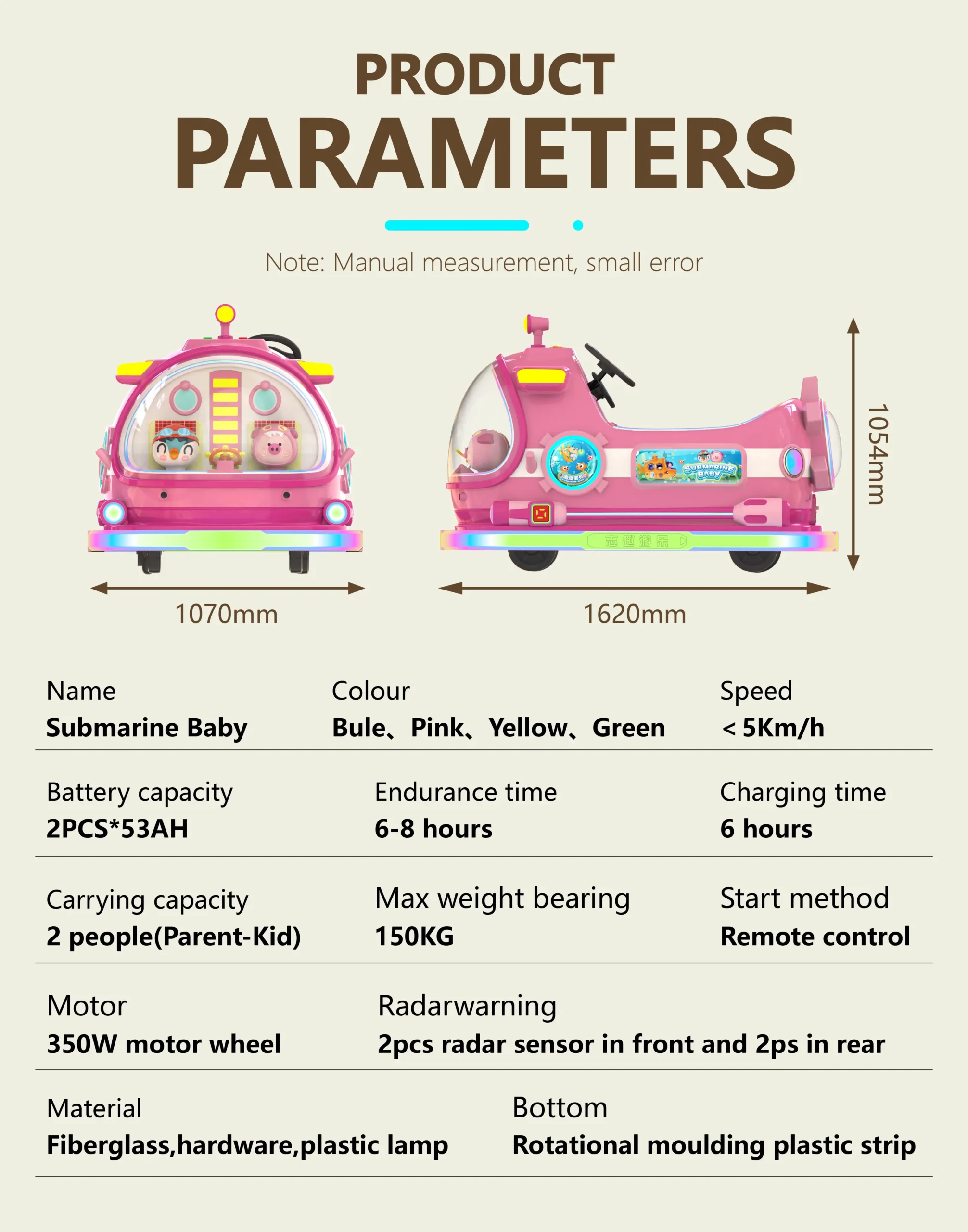 Specially designed for plazas and outdoor entertainment zones, this submarine-style kiddie ride combines interactive fun with safety. The LED system enhances visual appeal, attracting children in malls, playgrounds, and amusement centers. With a strong fiberglass body, it resists sun, water, and scratches, while providing long battery life. Ideal for OEM/ODM manufacturing projects, rental operators, and entertainment suppliers looking for durable and customizable ride-on cars.