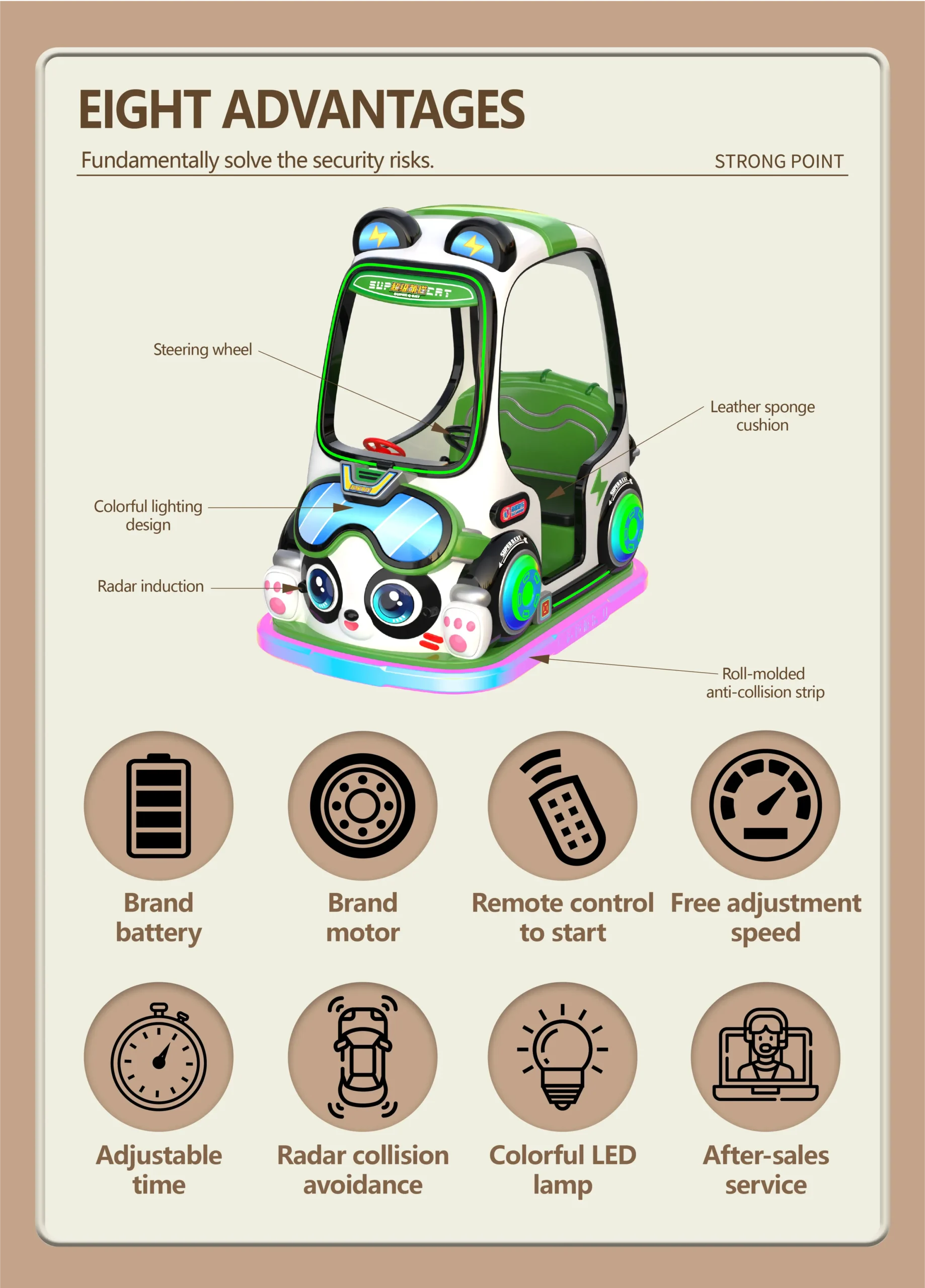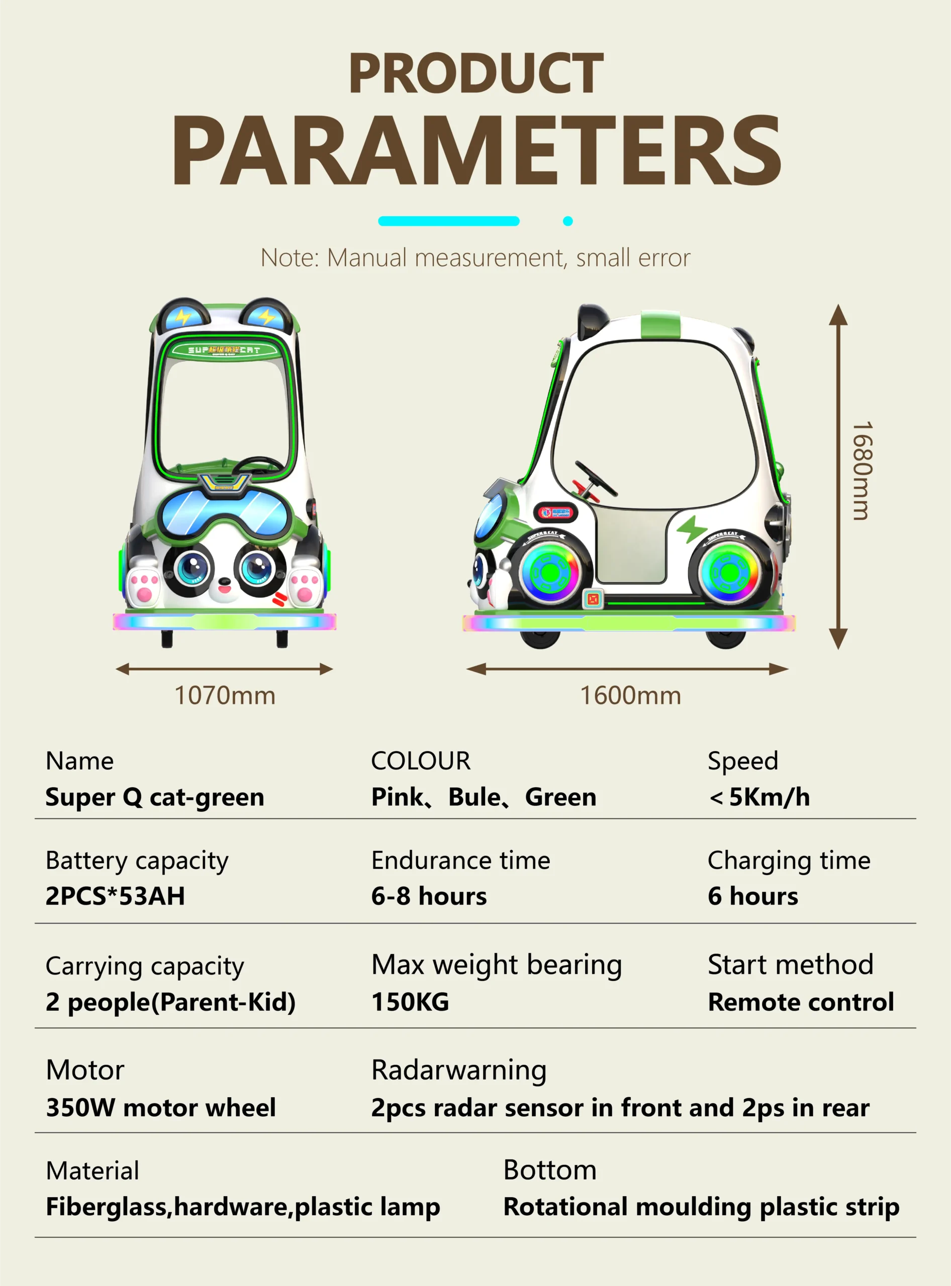 The battery-powered cat plaza car is crafted for safe outdoor rides, combining anti-fall and anti-collision systems with long-lasting fiberglass durability. Featuring LED lighting and interactive sensor functions, it creates an engaging play experience in plazas, malls, amusement parks, and kindergartens. Perfect for OEM bulk orders, this ride is built for durability, environmental sustainability, and endless fun.