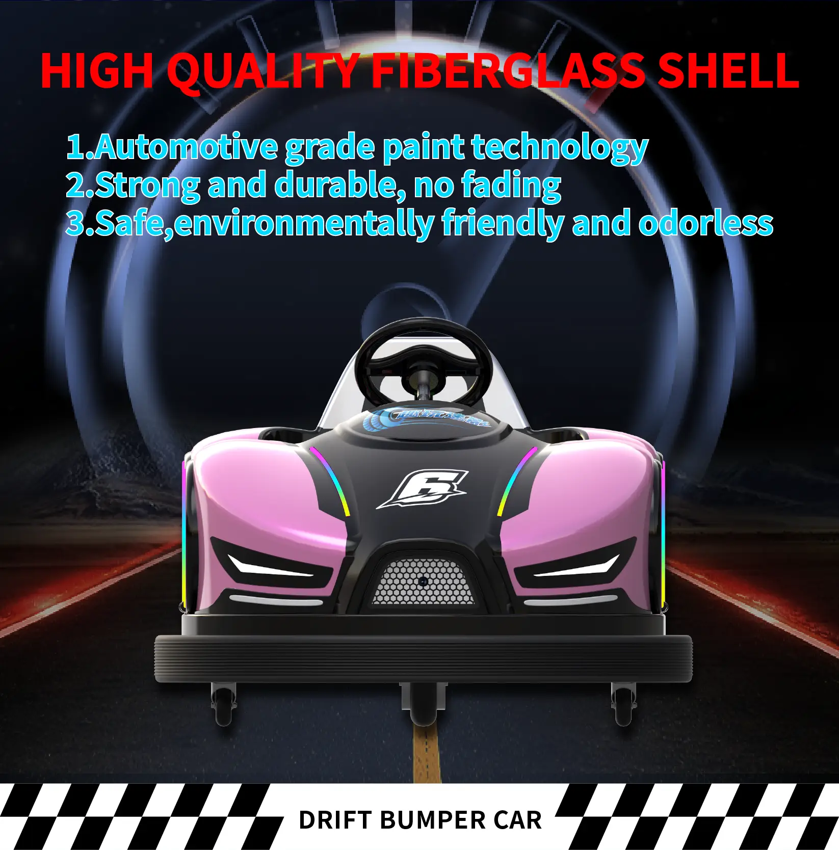 Factory-supplied pink fiberglass electric bumper cars built for children’s safety and fun. Featuring anti-collision, waterproof, sunproof design with interactive sensors and long-lasting battery. Perfect for theme parks, malls, and rental businesses with full OEM/ODM customization.