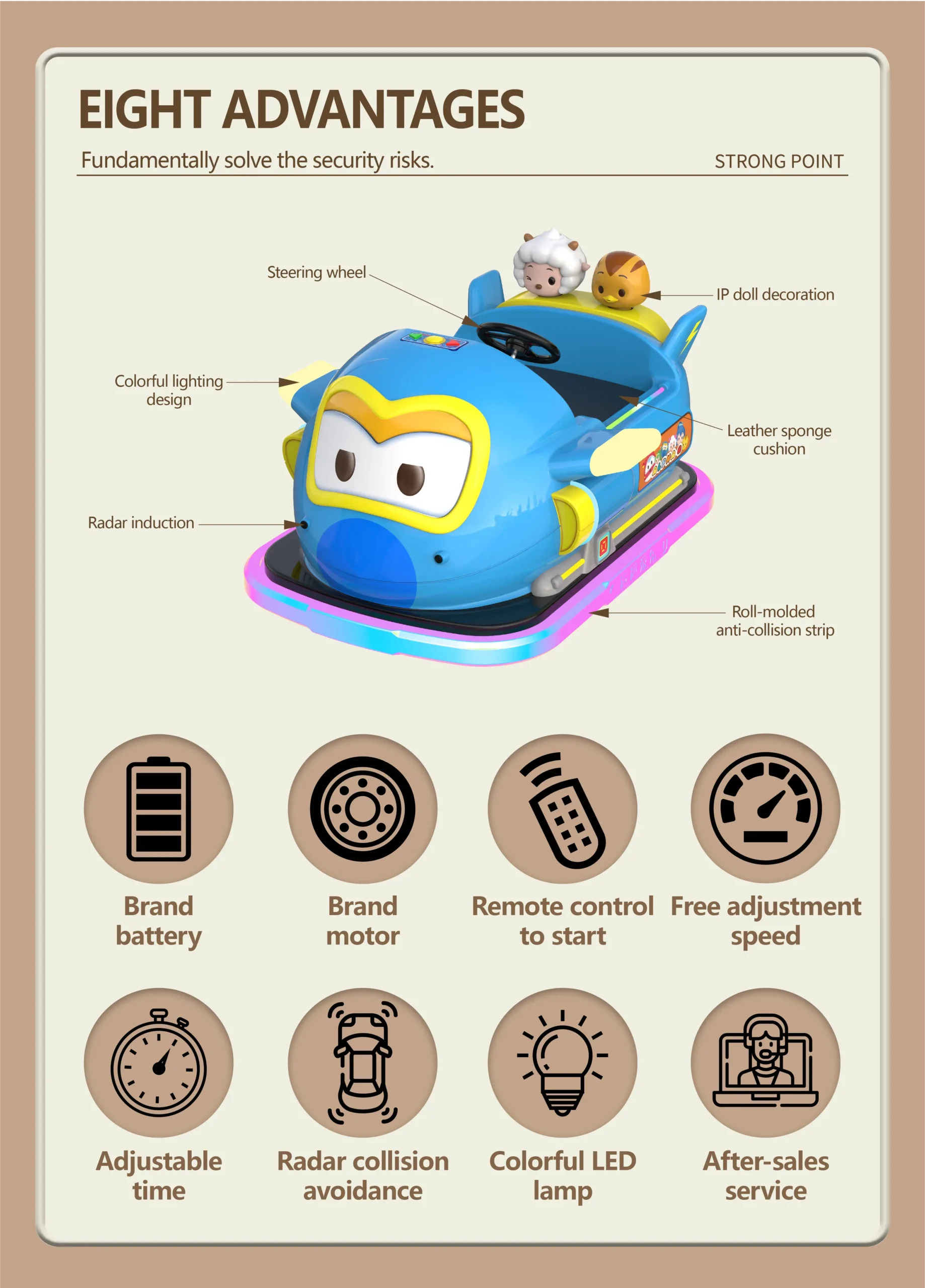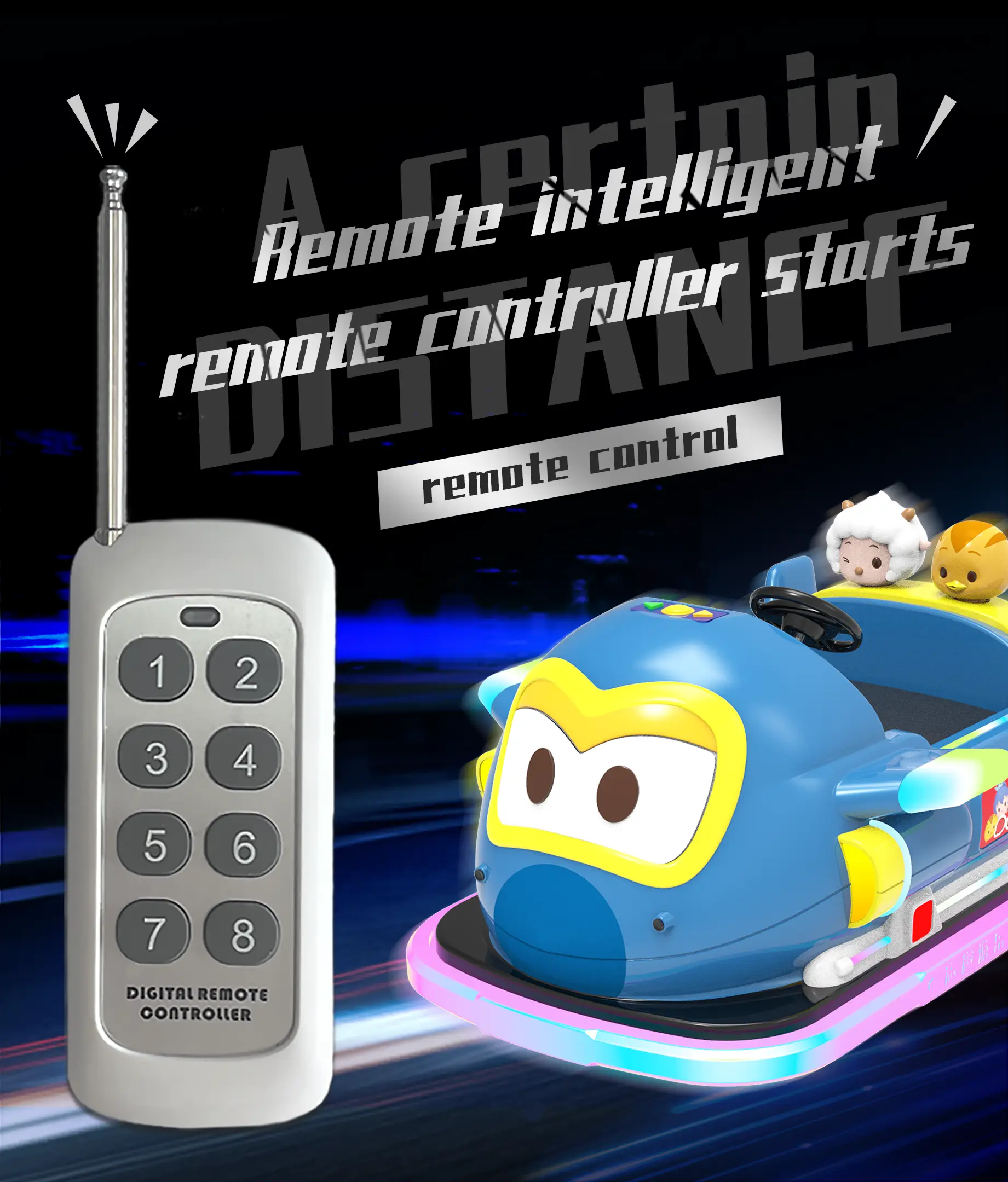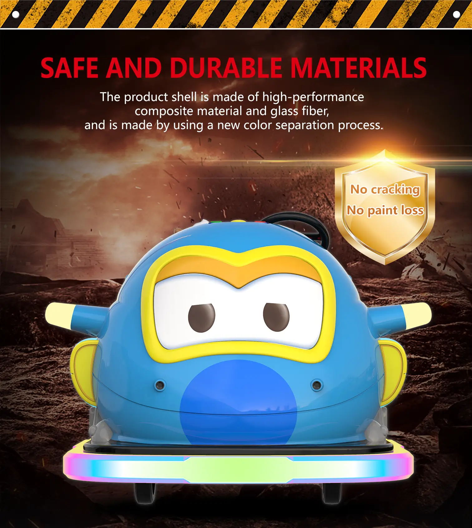 Plaza ride-on car with LED effects and fiberglass structure. Anti-scratch and waterproof. OEM bulk supplier for amusement parks.